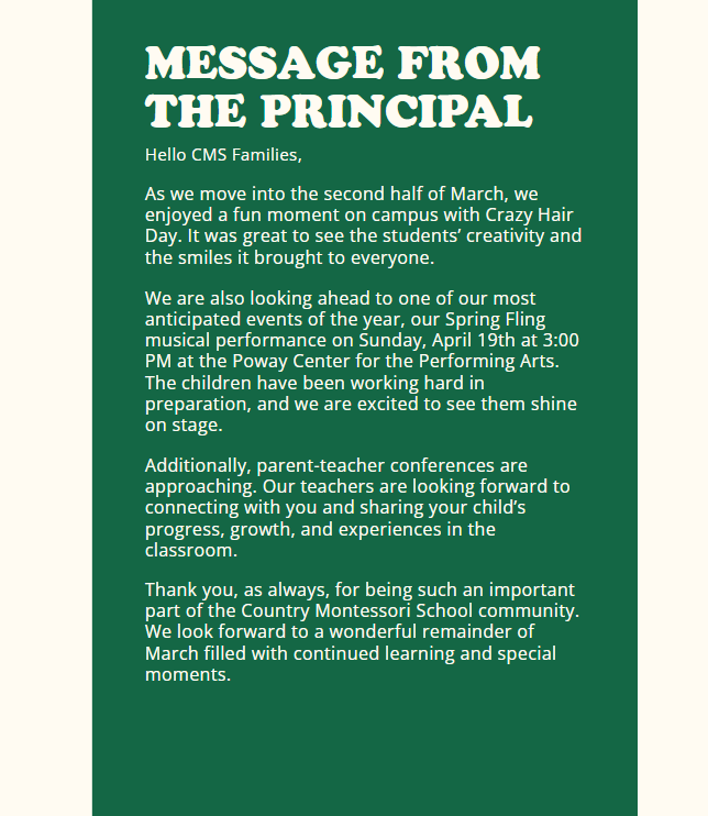 This is our last fundraiser of the year, and it is rapidly approaching. All funds raised will be invested in the CMS Campus! Or focus this year will be: installing a marquee sign for the front of our school and outdoor security. These projects will provide a modern way to communicate important news to our community and ensure a safer environment for our students.