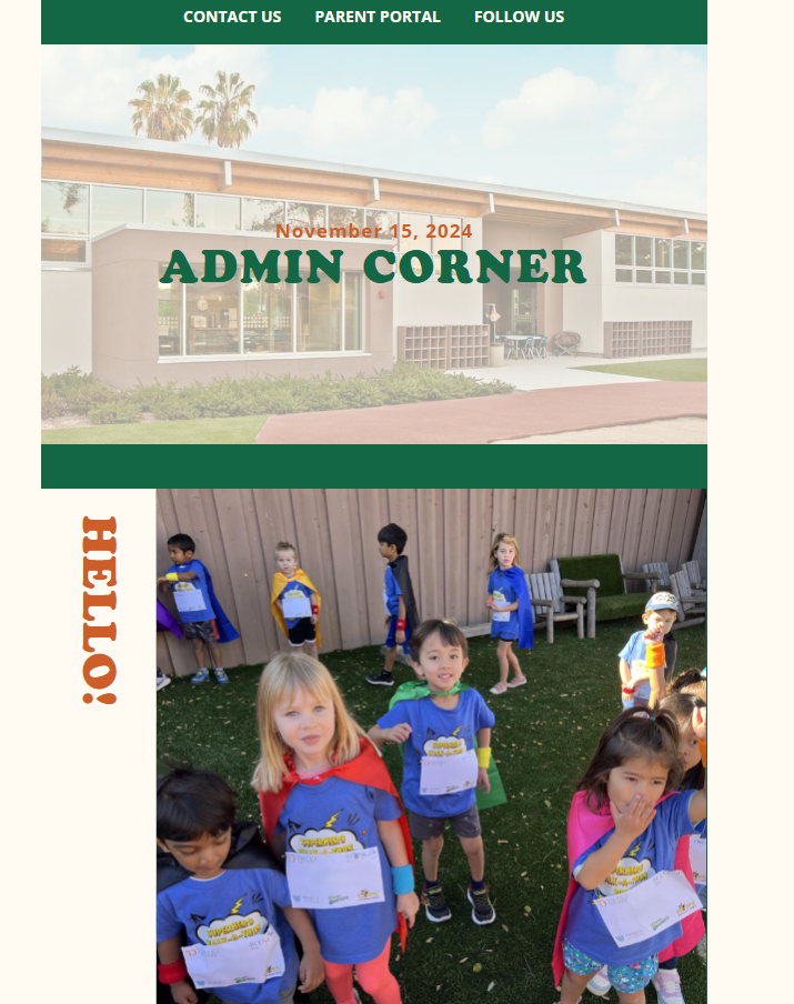 Please let Susan at susank@countrymontessori.org know if you would like to sign up. Full-day $50. Please note that arrival times remain the same, with 7:30-8:30 being the window for drop off. Due to scheduling and staffing – drop in’s are not allowed. Deadline to sign up: Wednesday, November 20th.
